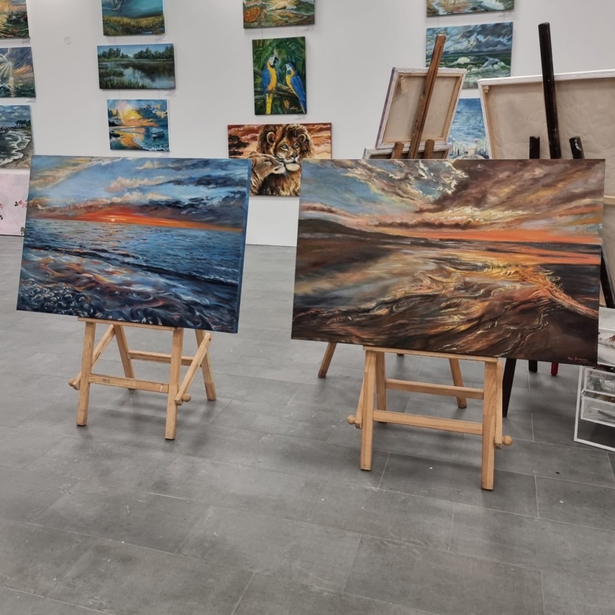 Gleznas iespējams apskatīt klātienē manā izstādē Saga centrā (vairāk nekā 50 darbi, tai skaitā arī manas meitas un audzēkņu radītie).