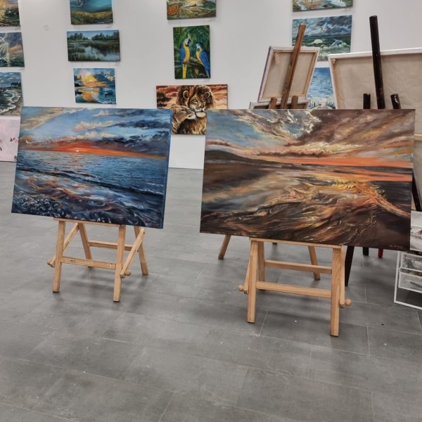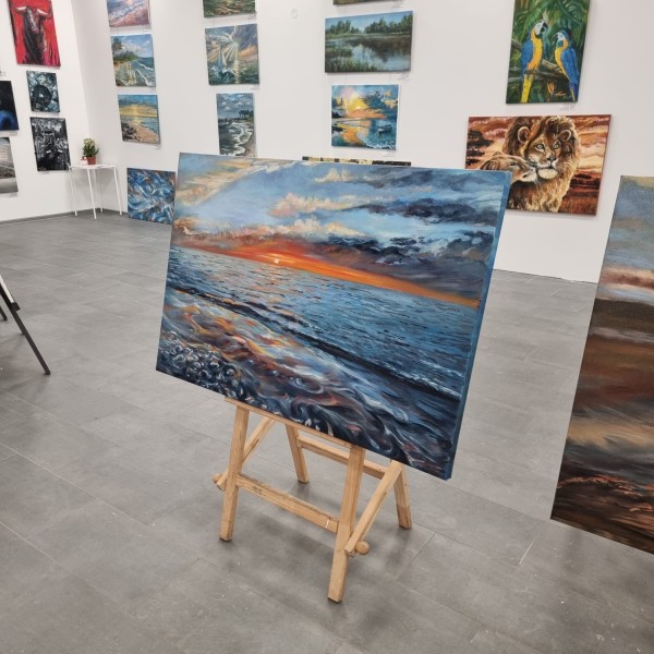 Eļļas glezna uz audekla (70×100 cm), radīta izstādes laikā Saga centrā.