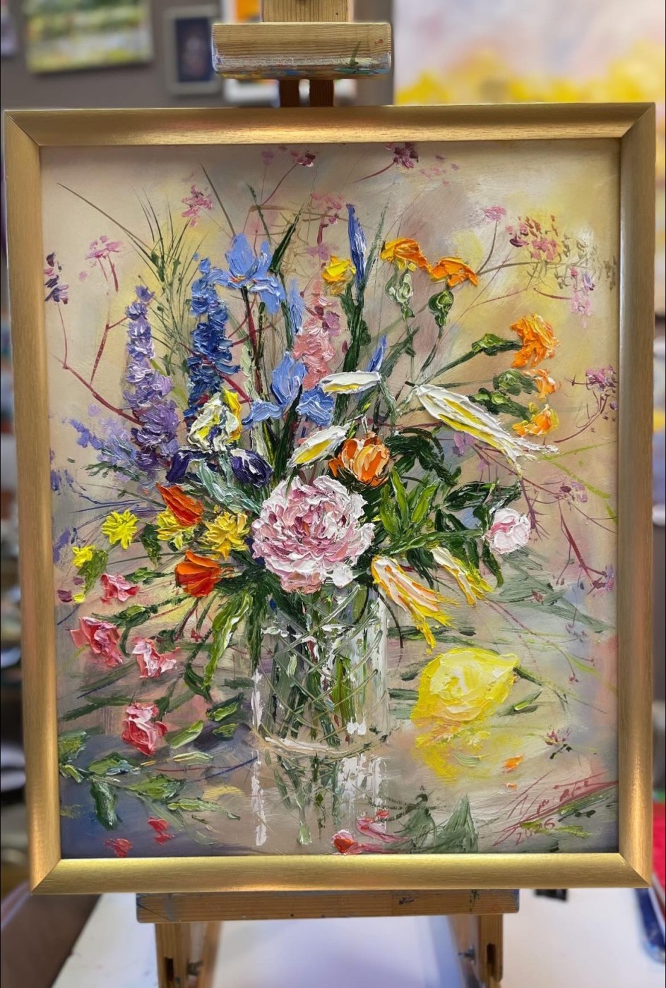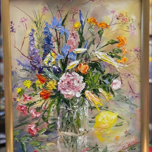 Ziedu klusā daba. Elļa kartons. 50x50cm