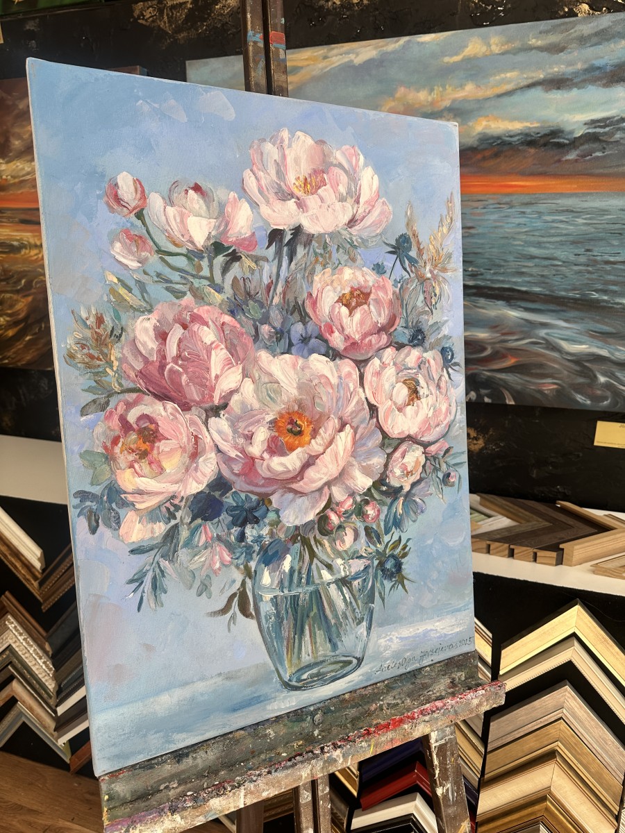 Liela peoniju glezna | Oriģināldarbs | Eļļa uz audekla | Interjera dekors