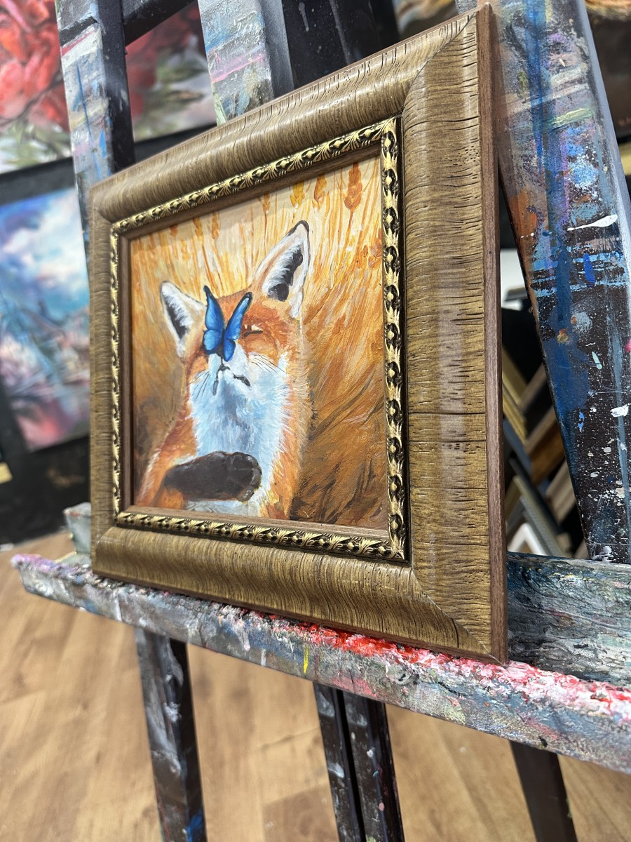 Maza glezna ar lapsu un tauriņu | Oriģināldarbs rāmī | Ideāla dāvana