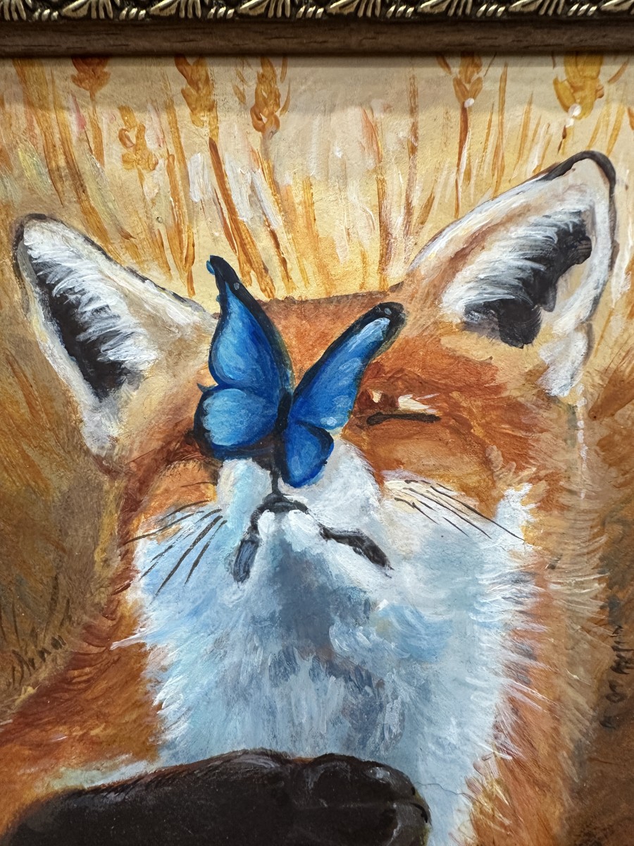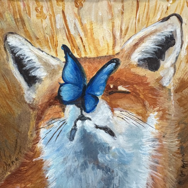 Silta un aizkustinoša glezna ar lapsu un tauriņu — mazs mirklis no dabas, pilns ar mieru un vieglumu.