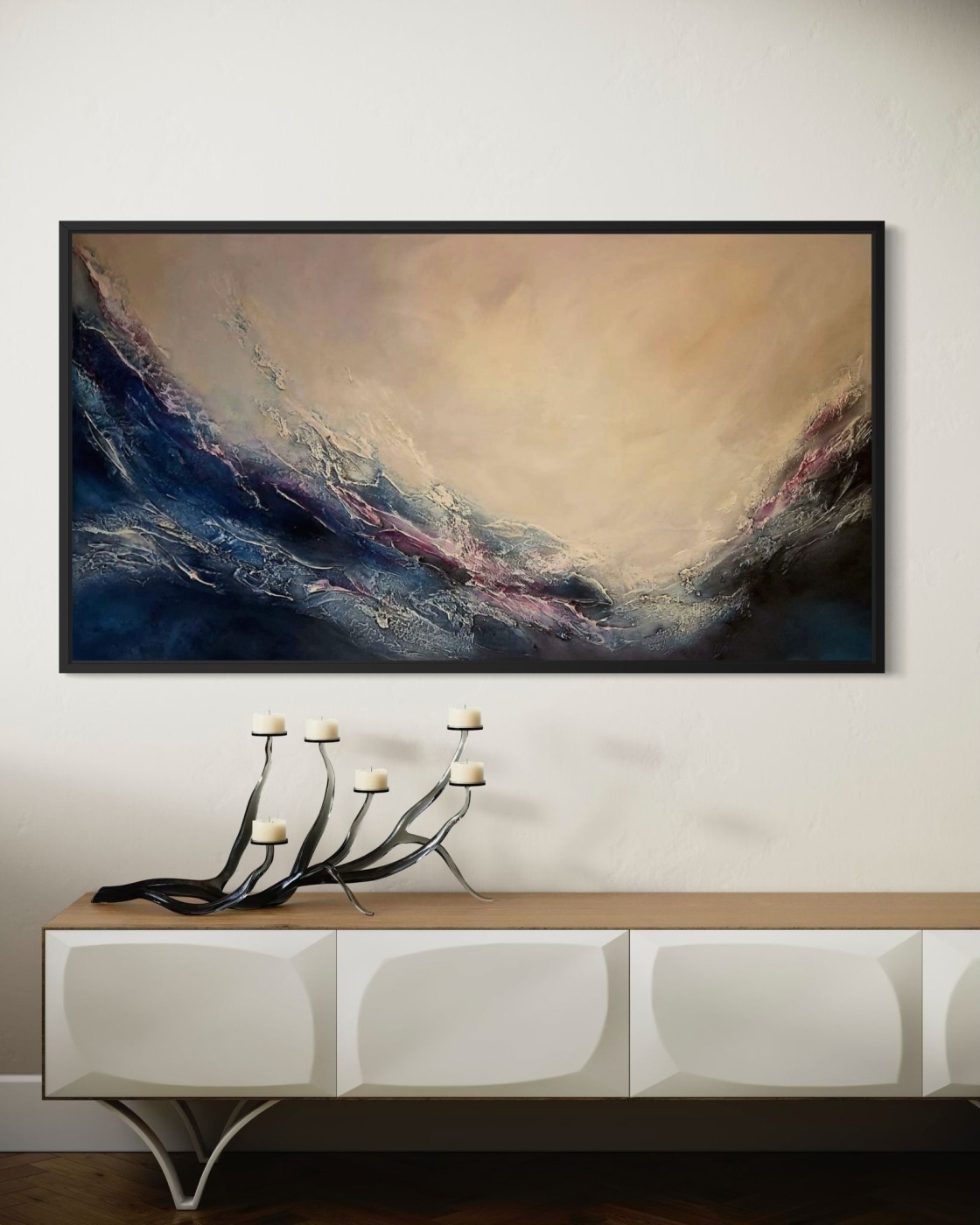 Jauktā tehnika. Teksturizēts darbs. Glezna pilnīgi gatava uzstādīšanai. Nav nepieciešams papildus rāmis.