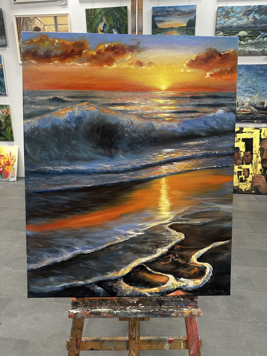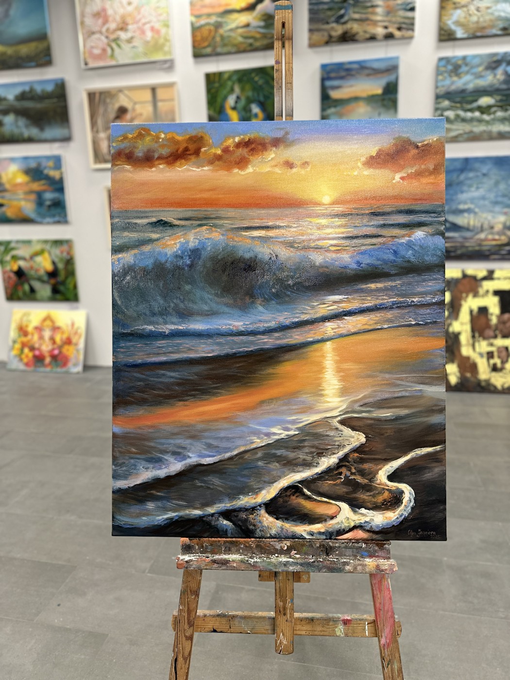 #OlgaJevsejeva #SaulesPieskāriens #TouchOfTheSun #artlatvia #latvianartist #artforsale #sunsetpainting #seascapepainting #paintingforthesoul #radosuma #gleznas #māksla #interiorart #artinriga #summerlight #emotioninart