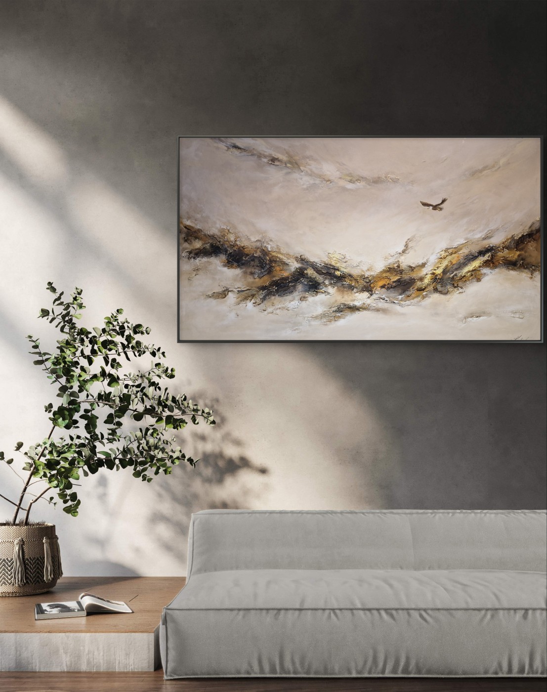 Jauktā tehnika. Teksturizēta tehnika. Glezna pilnīgi gatava uzstādīšanai. Nav nepieciešams papildus rāmis.
